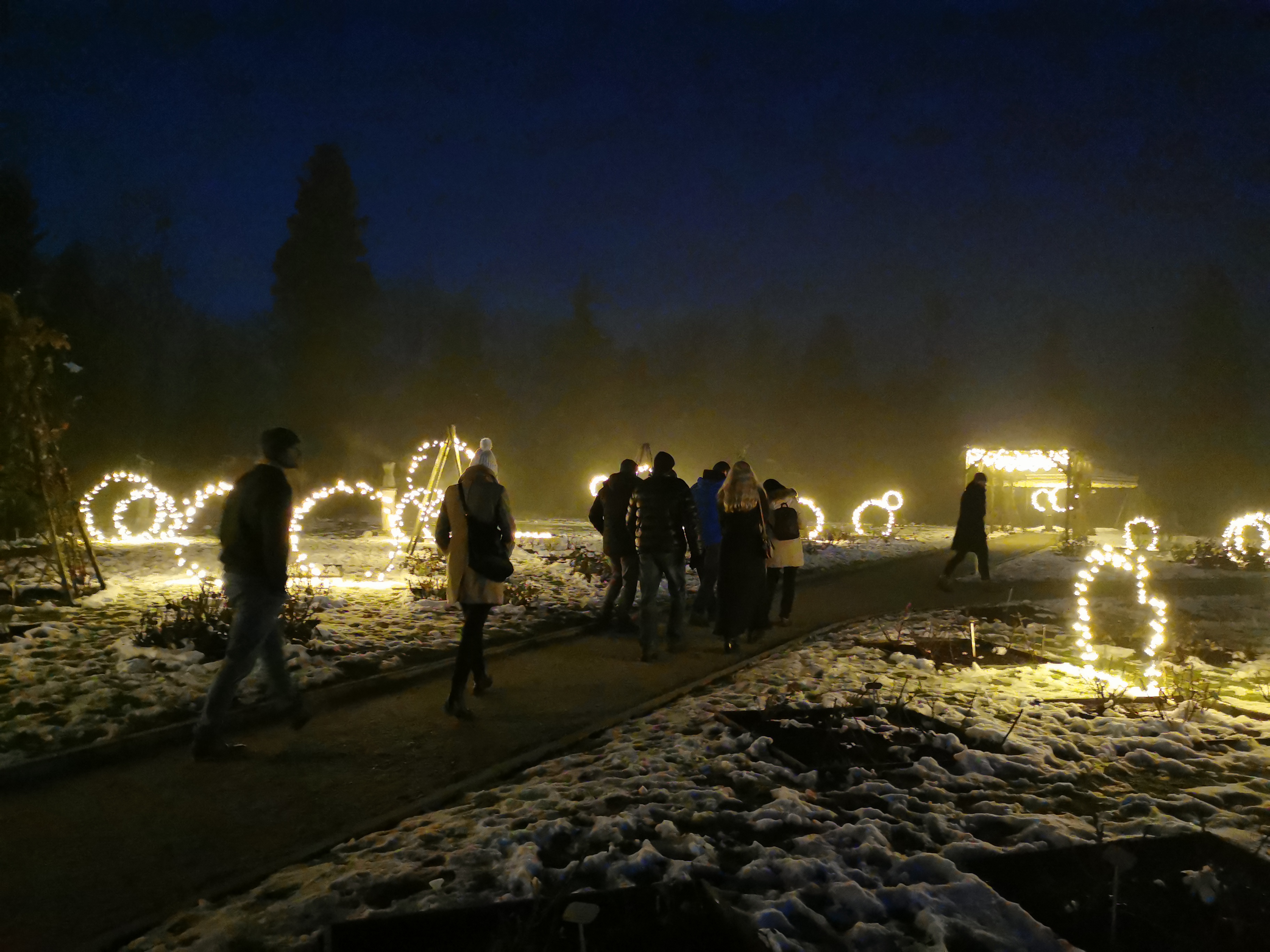Decembrsko srečanje smo praznično obarvali in se podružili v Arboretumu Volčji Potok. Hvaležni smo, da imamo znotraj naše skupine različne strokovnjake in iščemo priložnosti in možnosti, kako znanja deliti. Imeli smo strokovno voden ogled z našim članom Simonom Ogrizkom, dipl. inž. agr. in hort., direktorjem podjetja FLDC, Floral and Landscape Design Consulting, ki redno sodeluje z Arboretumom. Predstavil nam je zgodovino parka in park v času vegetacije. Doživeli smo Božično-novoletno pravljico.