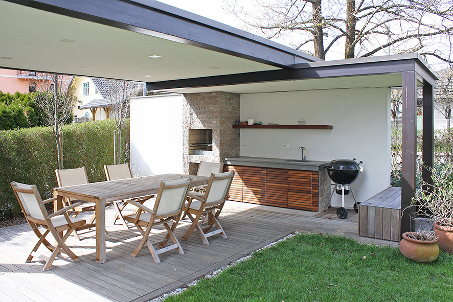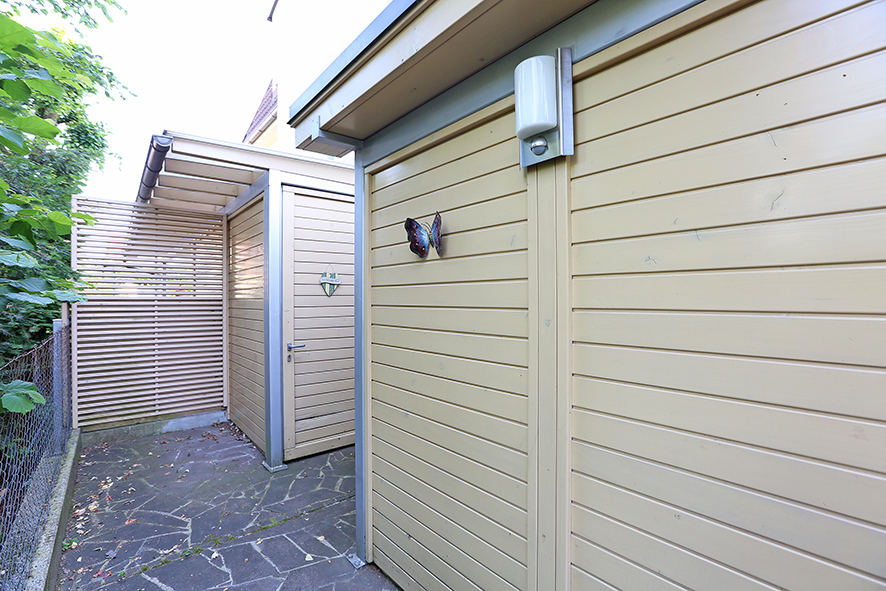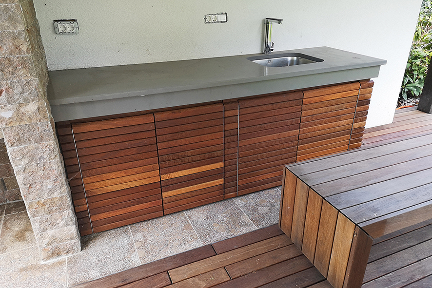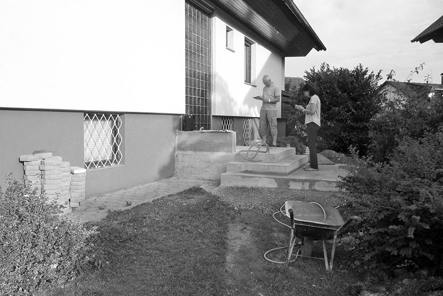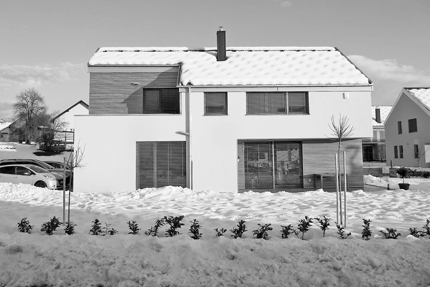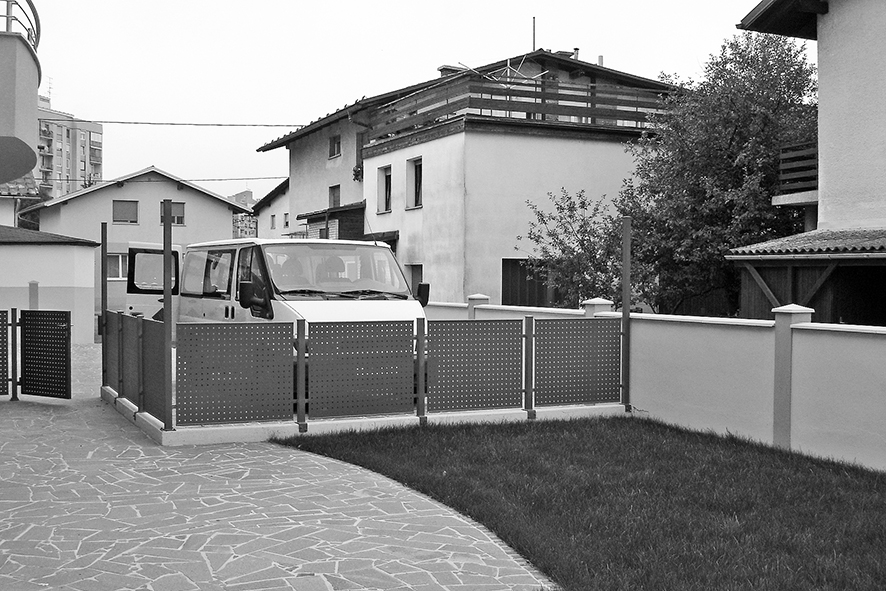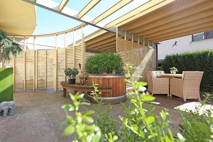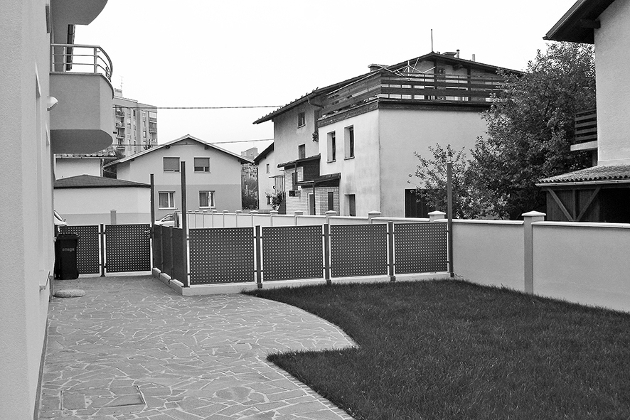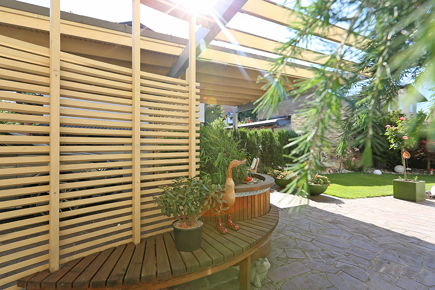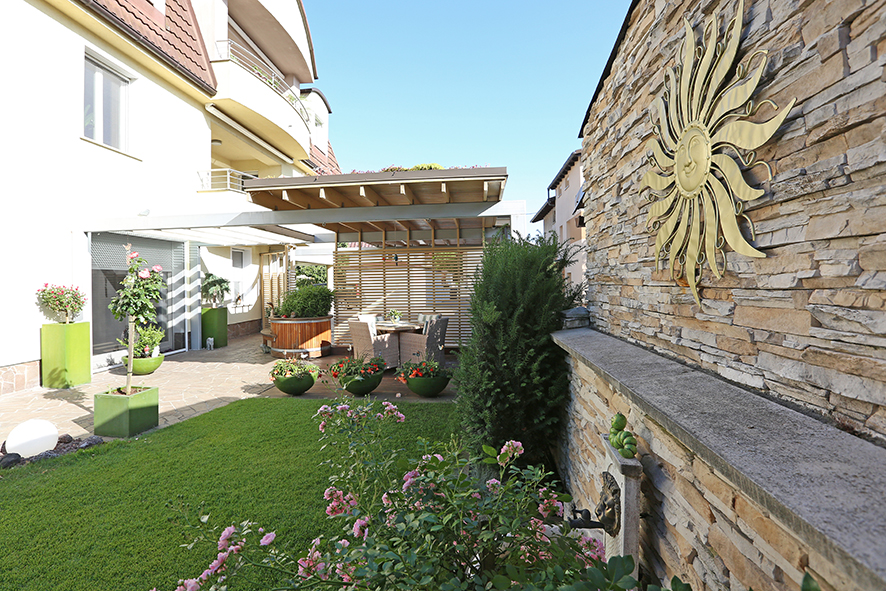 Primer iz Rožne doline je prispodoba slikarske umetnine, polne nasprotij, ki delujejo v skladnem ravnovesju. Ozek pas ob večstanovanjski stavbi je na željo lastnikov potreboval pokrit parkirni in bivalni del. Oblikovanje zaščite za avtomobil in vrtno garnituro je pripeljalo do estetske in funkcionalne rešitve – nadstreška, ki pod eno streho združuje oboje. Vrtni lopi na drugi strani hiše pa shranjujeta opremo za urejanje okolice in gojenje rastlin. Fotografije in tekst: Špela Pavlič Kos Načrtovanje: Jože Kos, Mizarstvo Kos Mizarska dela: Mizarstvo Kos Krovsko-kleparska dela: Stavbno kleparstvo in krovstvo, Gregor Lamovšek s.p. Steklarska dela: Steklarstvo Vidmar