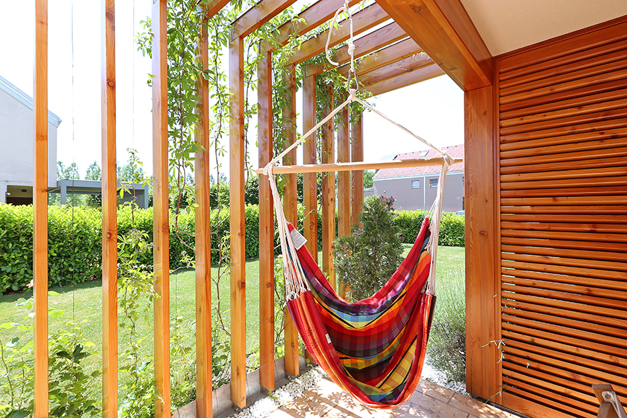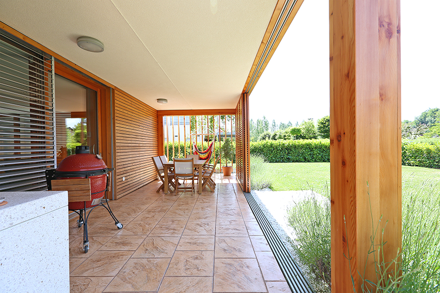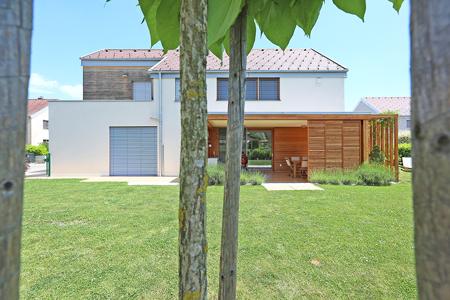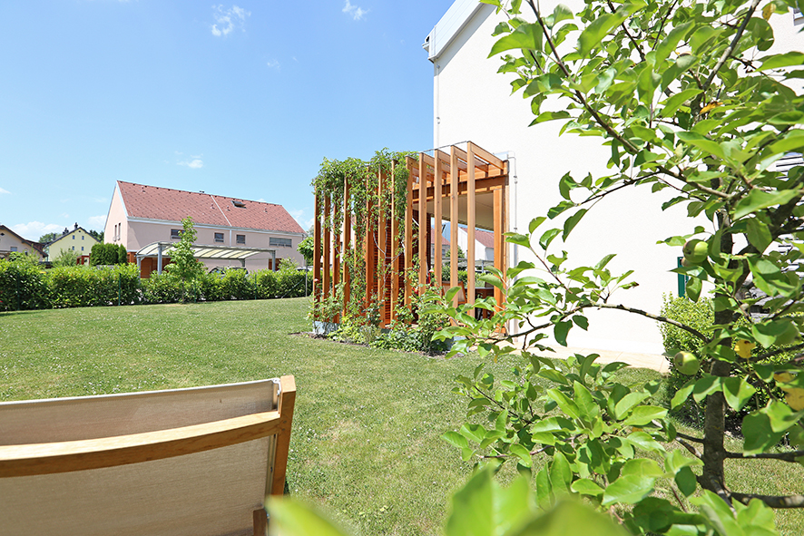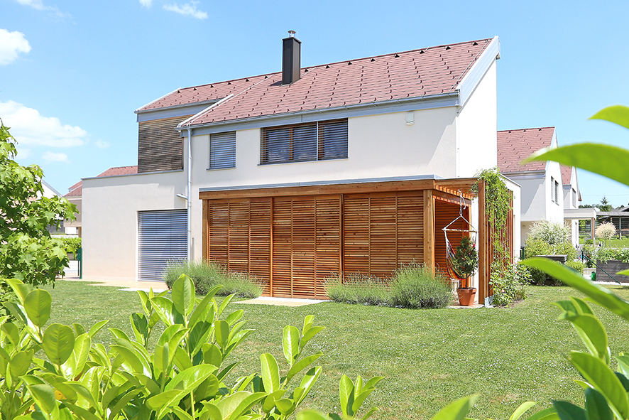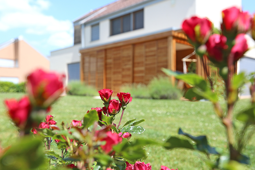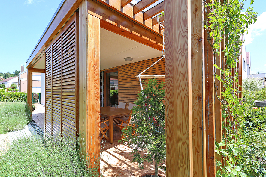 V soseski bivalno klimo določa bližina Kamniško-Savinjskih Alp. Tam je na žgočem soncu zrasel gorski macesen, uporabljen pri gradnji nadstreška na terasi. Zaradi globokega koreninskega sistema se macesnove drevesne lastnosti odražajo v trpežni, elastični konstrukciji in odpornosti na pozebe in mraz. S promocijo lesene dobe in vgradnjo lokalnega lesa želimo drevesne funkcije preslikati v hiše slovenskih družin.