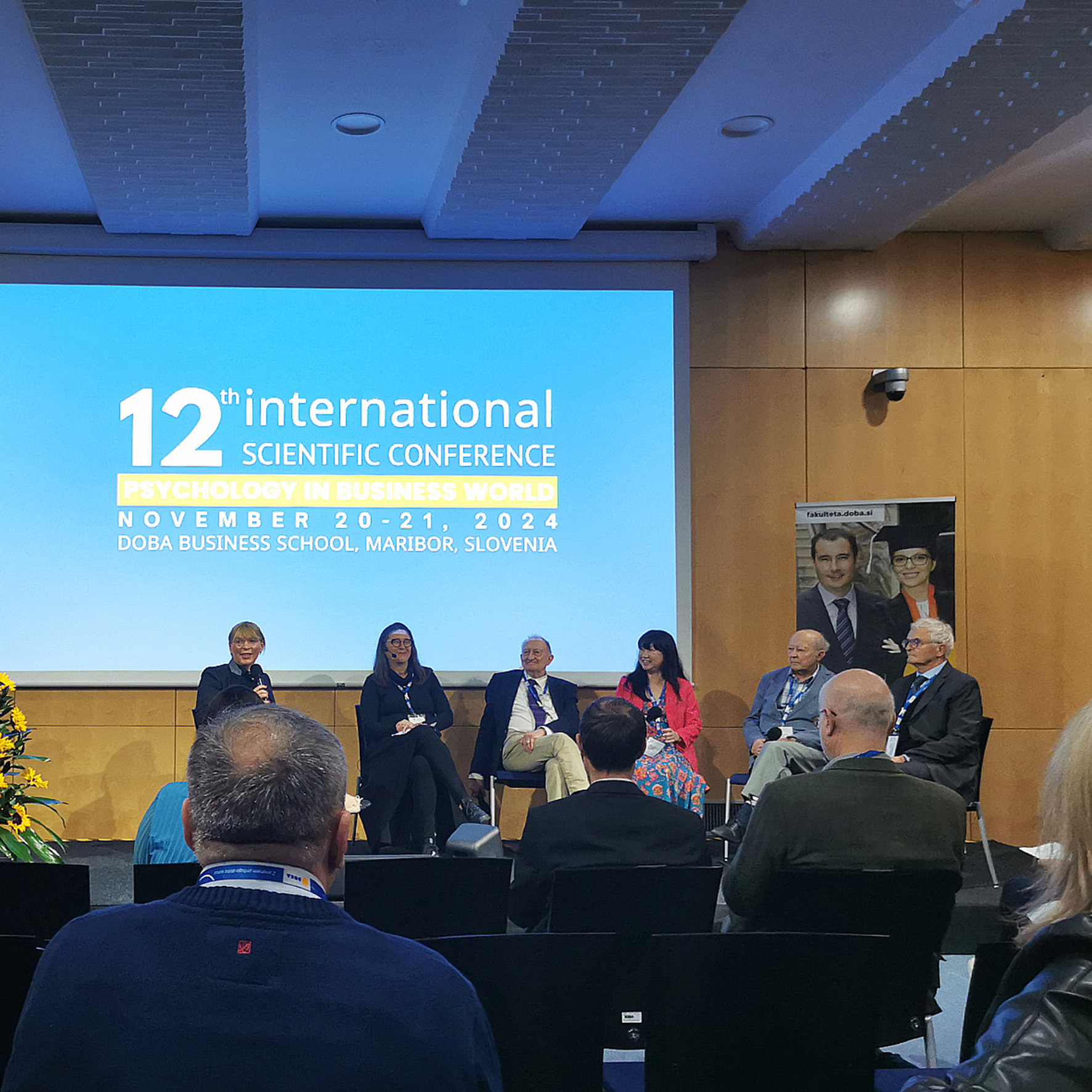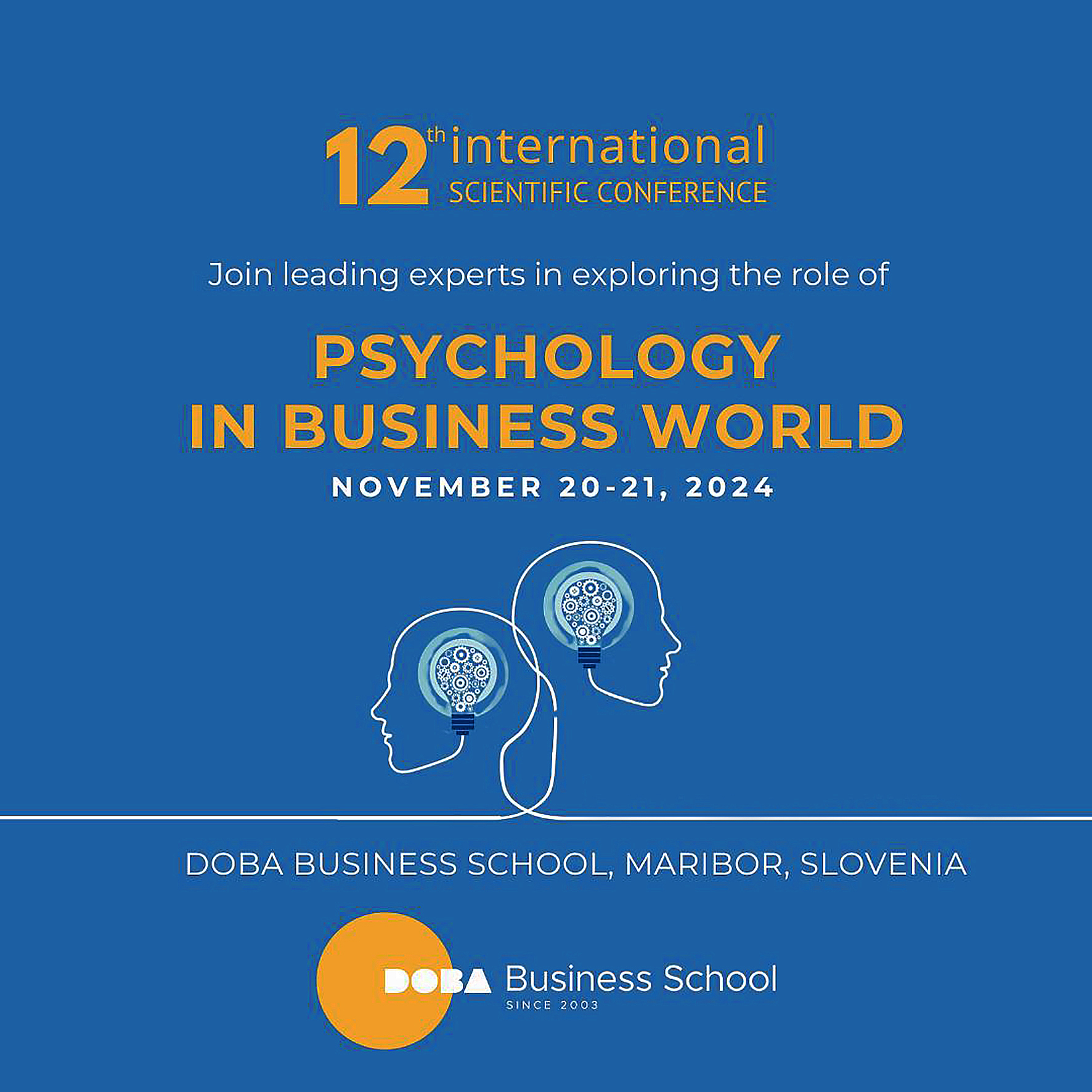 DOBA Fakulteta je organizirala 12. mednarodno znanstveno konferenco: Psychology in Business World, ki je prvič v Sloveniji povezala psihologijo in poslovni svet. Na dvodnevnem akademsko-poslovnem srečanju se je v Mariboru zbralo več kot 150 udeležencev. Med njimi tudi Petra Kos, direktorica družinskih podjetij Mizarstvo Kos in Center za zunanjo ureditev ter Anže Kos, Flow State Coach in kineziolog, ustanovitelj podjetja Mister Blackbird. Konferenca je osvetlila pomembnost psihologije v poslovnem okolju, še posebej v kontekstu prodaje, poslovnih praks in razumevanja potrošnikov. Predstavljenih je bilo 60 raziskovalnih prispevkov mednarodno priznanih strokovnjakov s področij pozitivne psihologije, vedenjske ekonomije, coachinga in inovacij.