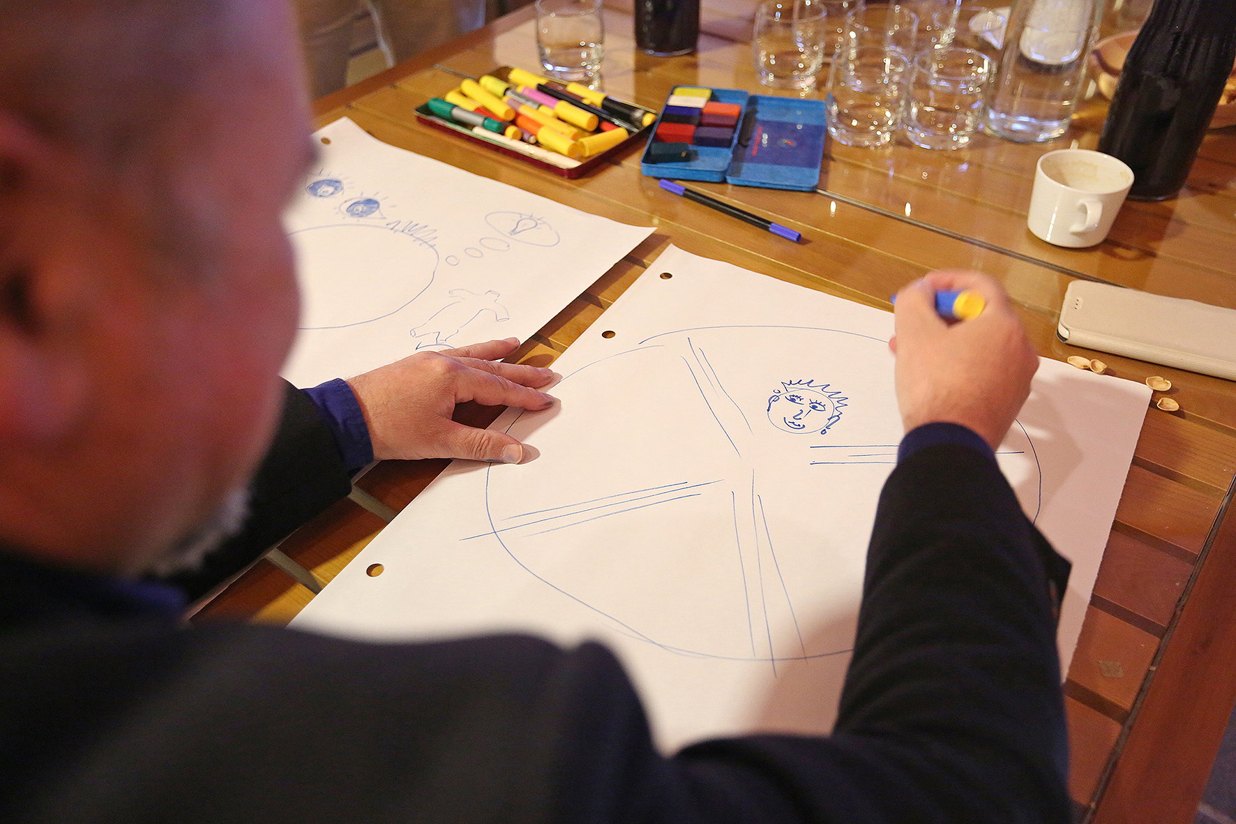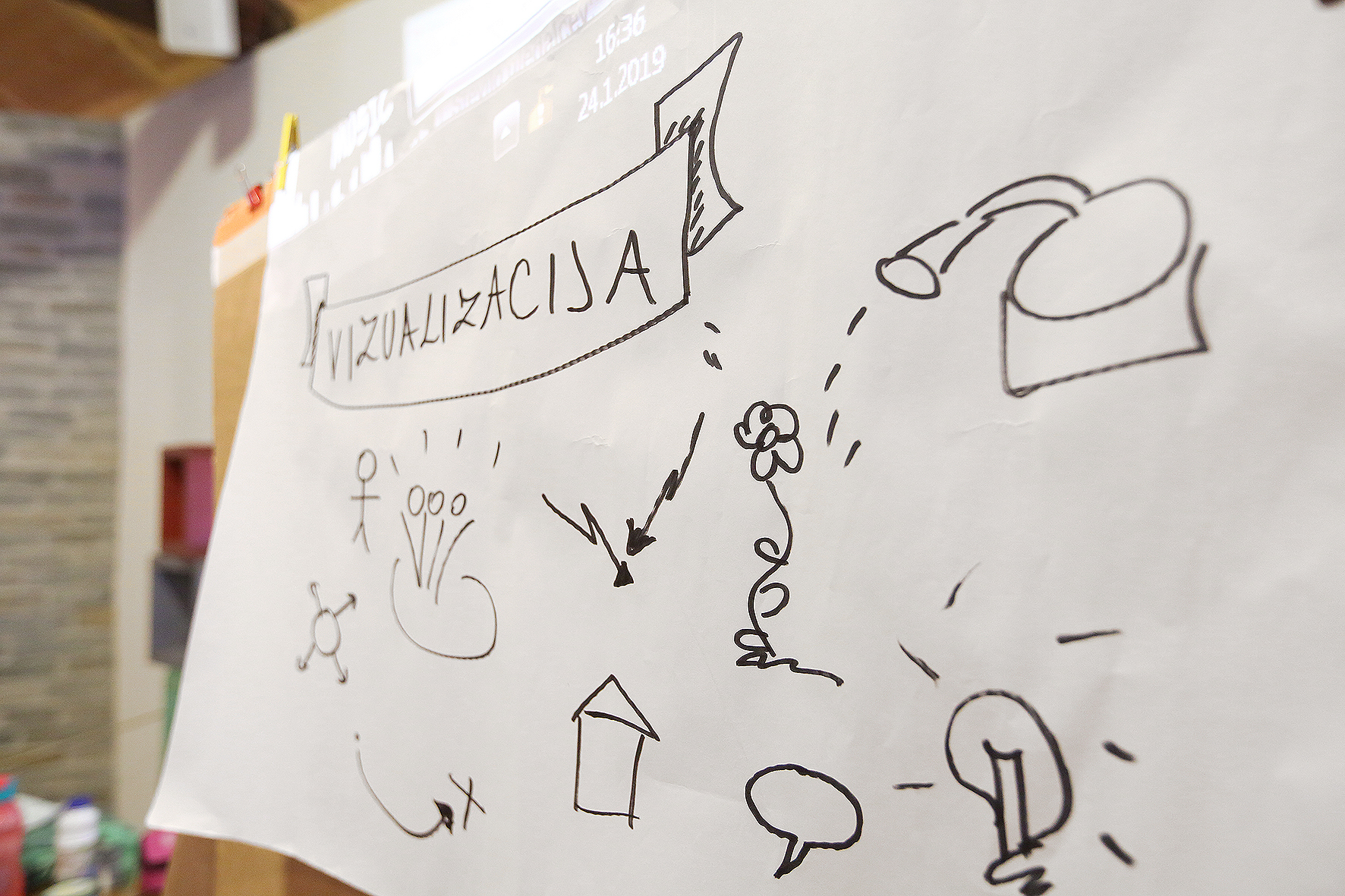 Poslovna skupina Centra za zunanjo ureditev je krepila odnose med člani. 🏋️♀️🏋️♂️ V galeriji materialov nam je moderatorka Alenka Oblakova pripravila timske naloge, kjer smo urili medsebojno sodelovanje, si podajali roke, vizualizirali skupno prihodnost in gradili razumevanje do drugega.