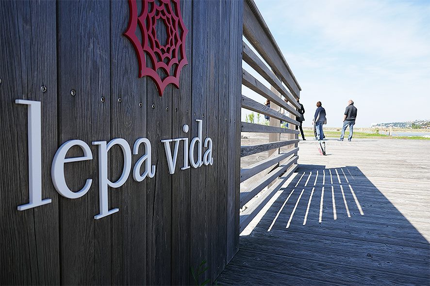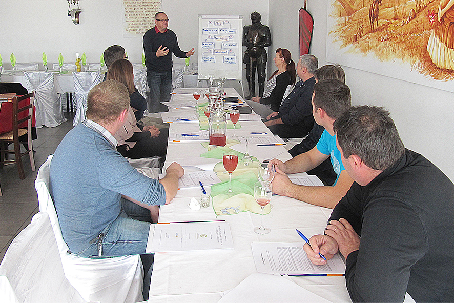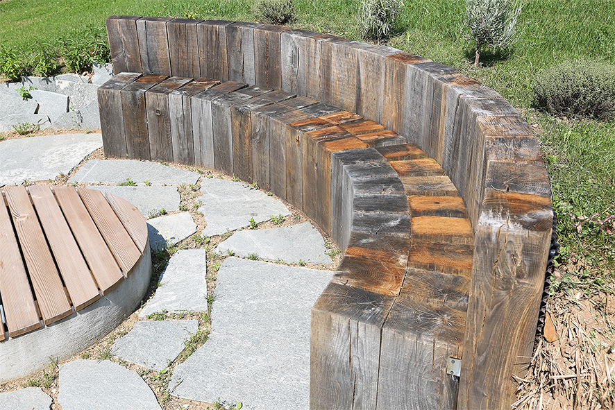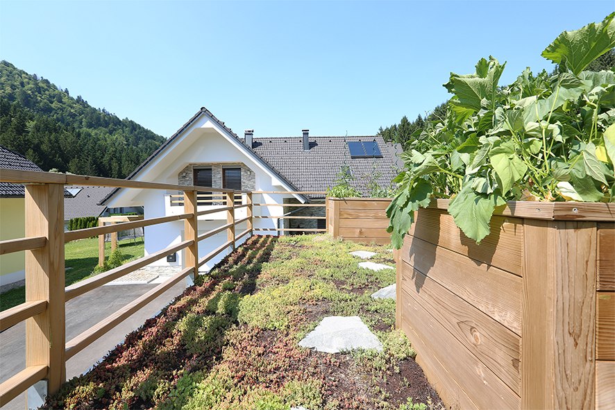 "Zaradi aktivnosti na vrtu je bilo potrebno dograditi prostor za zunanje bivanje in druženje širše družine – ustvariti funkcionalen bivanjski vrt iz naravnih materialov: rastlin, lesa, kamna, stekla, kovine in betona."